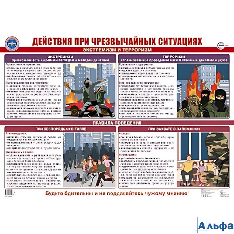 Плакат А2 Действия при чрезвычайных ситуациях. Экстремизм и терроризм. ПЛ-16359. А2