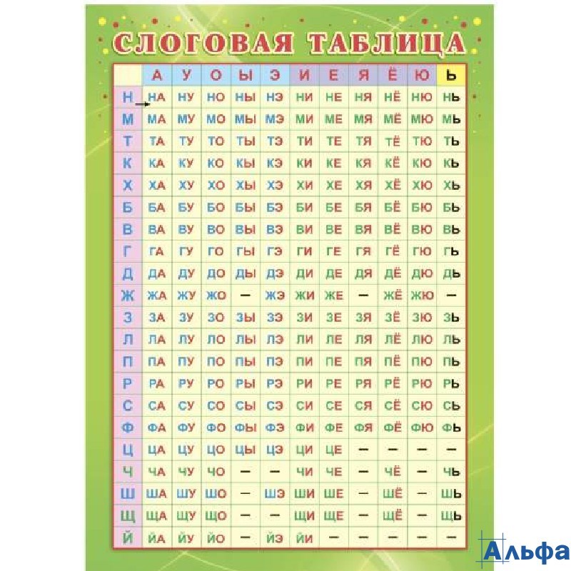 Плакат А4 Слоговая таблица КПЛ - 322 Сфера