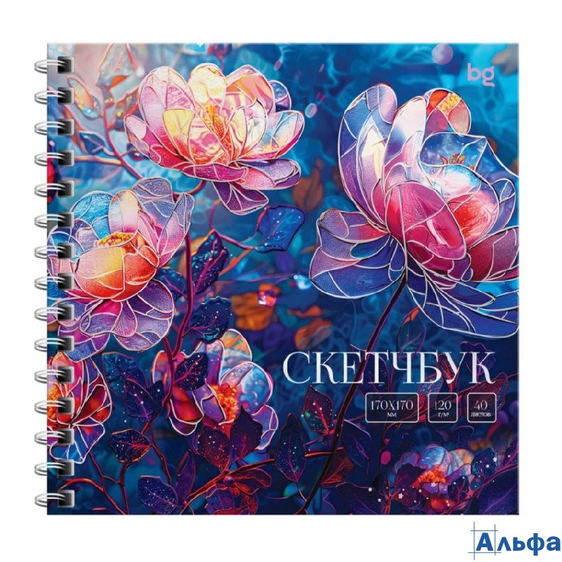 Скетчбук 170х170мм 40л гребень тв.обл. Витраж Цветы 120г/м2 BG Скв40гр_64599