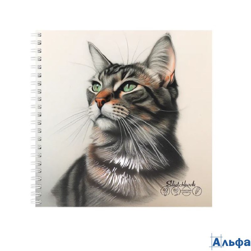 Скетчбук 190х190мм 40л гребень мягк.обл. Зеленоглазый котик блок-крафт 80г/м2 PROF-PRESS 40-0313