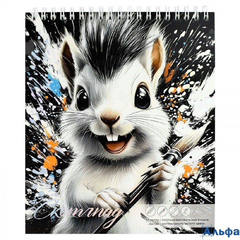 Скетчбук 30 листов А5 168х195 гребень Ежик-художник жесткая подложка тиснение фольгой 160г/м2 70487