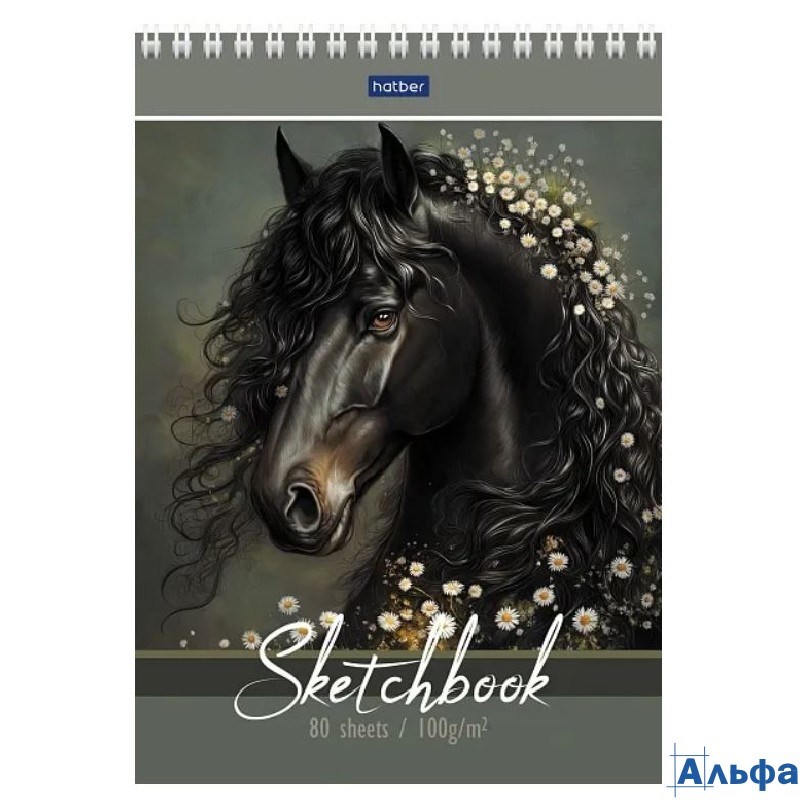 Скетчбук А5 80л гребень мягк.обл. Вороная грация жест.подложка 100г/м2 HATBER 80Б5Aгр_34436