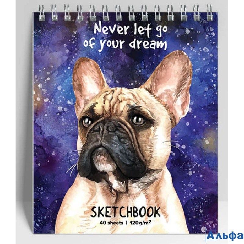 Скетчбук А6 40л гребень тв.обл. Бульдог мат.лам. 120г/м2 Seventeen 10739