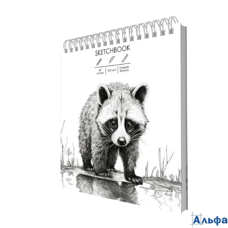 Скетчбук А6+ 40л гребень тв.обл. Енотик 100г/м2 Listoff ТС6405442