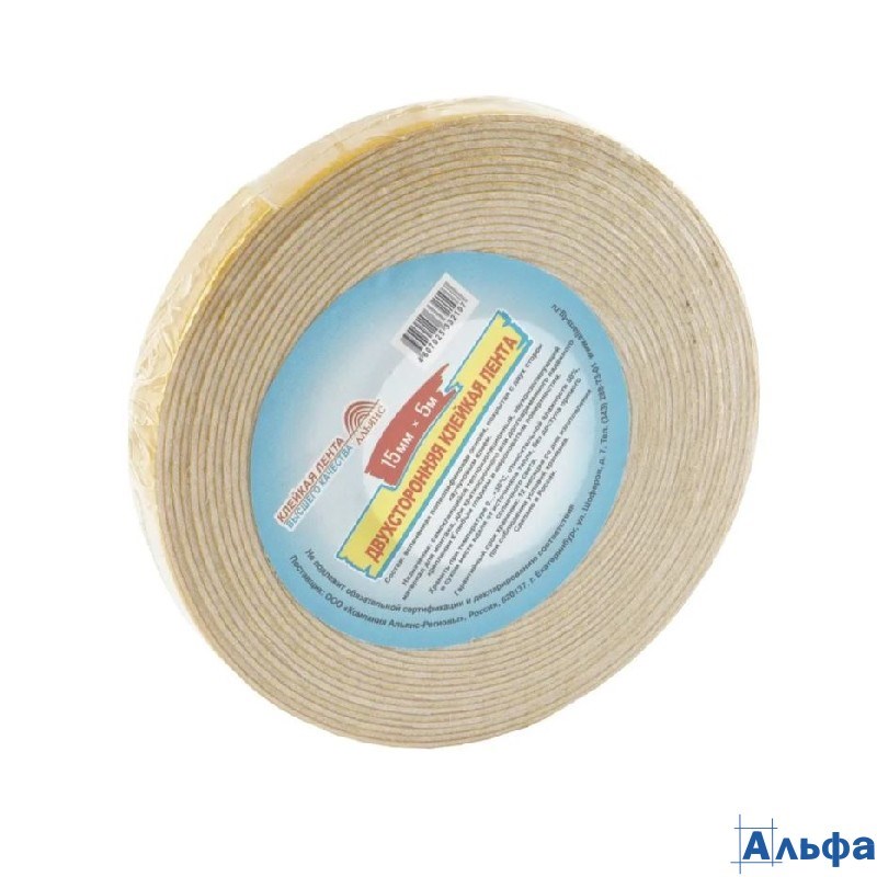Скотч двухсторонний 15мм х 5м вспененная основа АЛЬЯНС