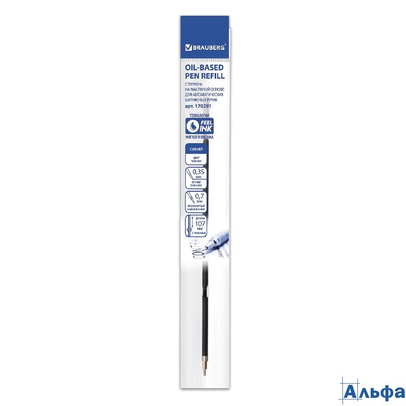 Стержень шариковый масляный 107 мм синий с ушками игольчатый узел 0,7 мм линия письма 0,35 ммBrauber