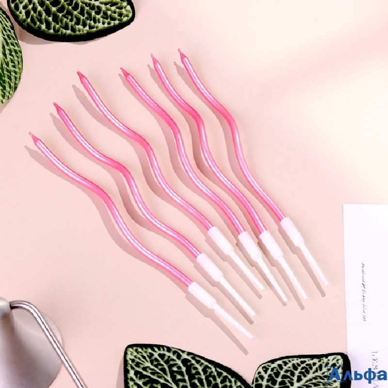 Свечи для торта витые Серпантин 6 шт. коктейльные розов. блик 7597550