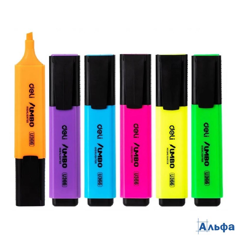 Текстовыделители набор 6цв 1-5мм скош/нак большой размер ассорти DELI EU366-MT