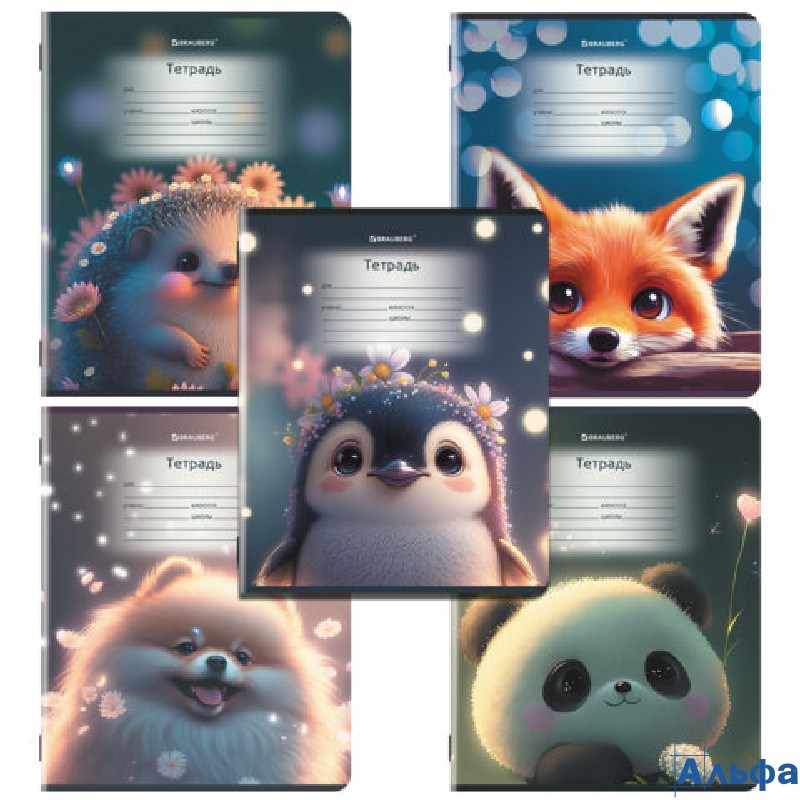 Тетрадь 12 л. косая линия обложка картон Зверушки Brauberg 107289