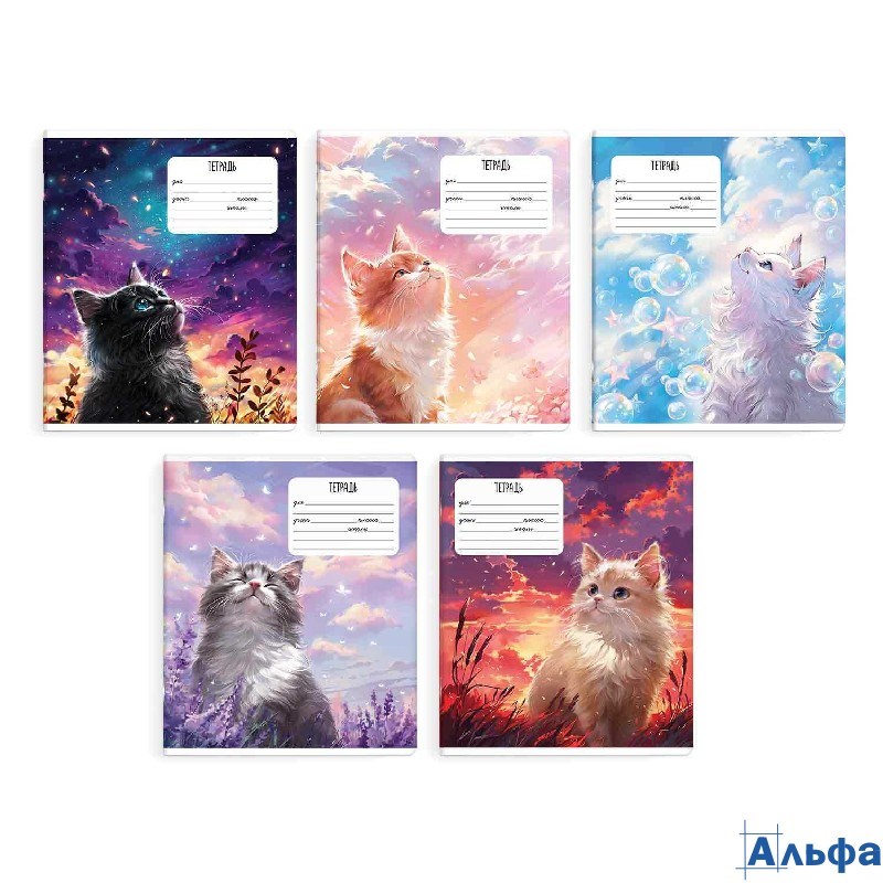 Тетрадь 24 листа А5+ клетка Мечты кота выборочный УФ-лак 68536 Феникс