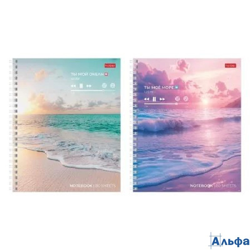 Тетрадь 80 листов А5 клетка, гребень Романтика заката ламинация софт-тач, 60-65г/м2 80Т5лВ1гр Хатбер