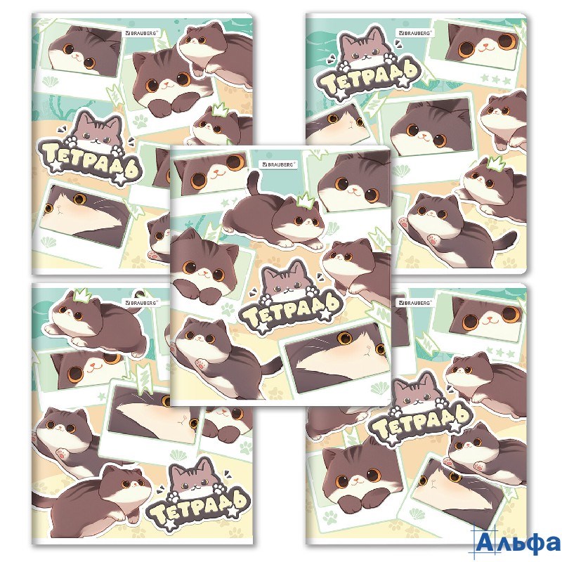 Тетрадь А5 48 л. скоба клетка выборочный лак кросс-серия Милые коты 405193 Brauberg