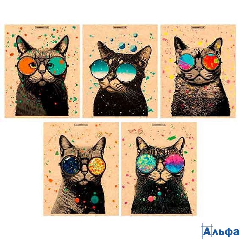 Тетрадь А5 48л клетка скрепка мелов.картон Коты в очках крафт ассорти ACADEMY STYLE 14112/5