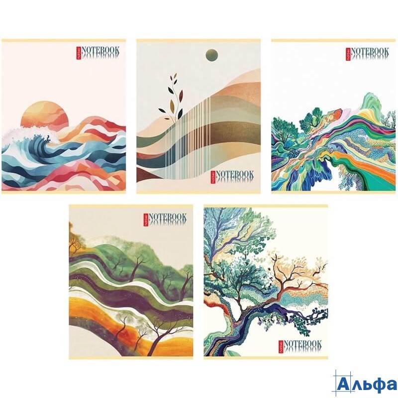 Тетрадь А5 48л клетка скрепка мелов.картон Волны вдохновения ассорти 5 диз. Хатбер 48Т5тВ1