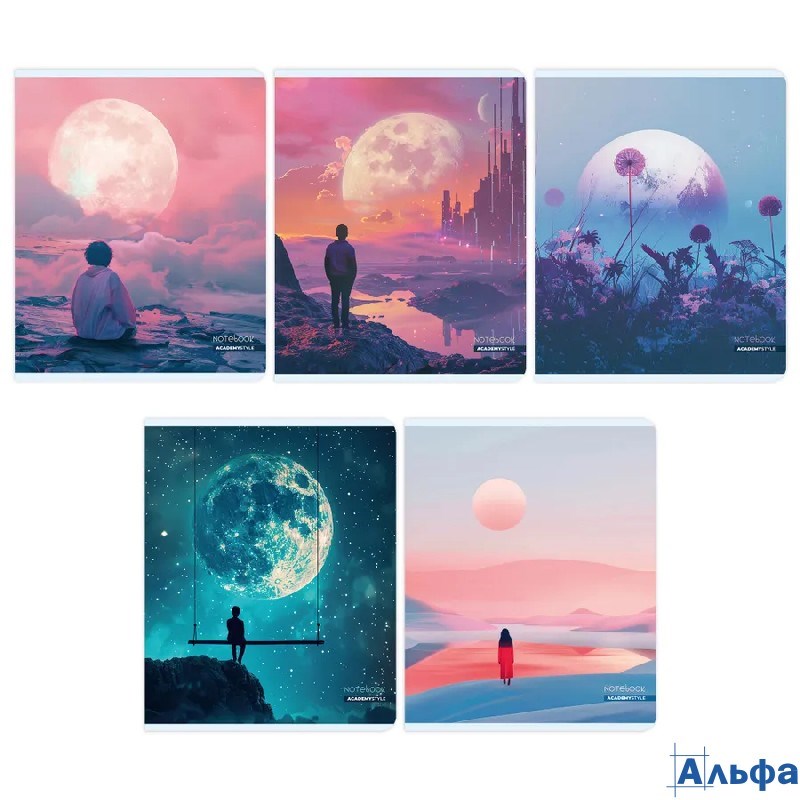 Тетрадь А5 96л клетка скрепка мелов.картон На заре УФ-лак ассорти Асаdemy style 15190/5