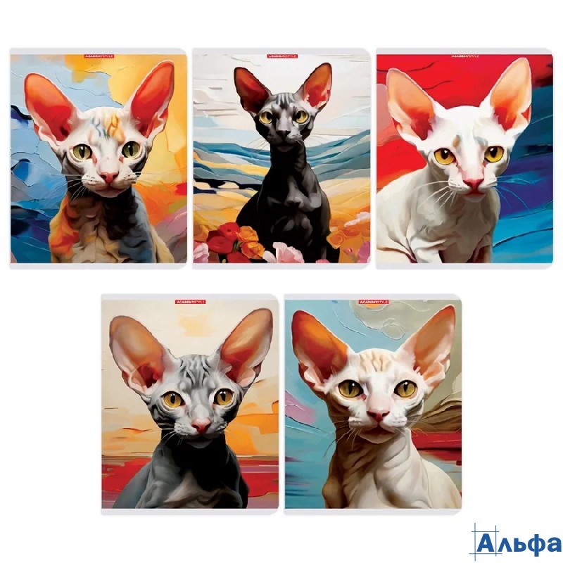 Тетрадь А5 96л клетка скрепка мелов.картон Сфинксы soft touch ассорти Асаdemy style 15198/5