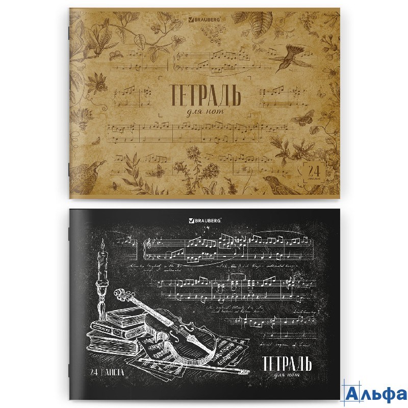 Тетрадь для нот А4 24 л. Обложка мелованный картон горизонтальная на скобе Brauberg Классика 404640