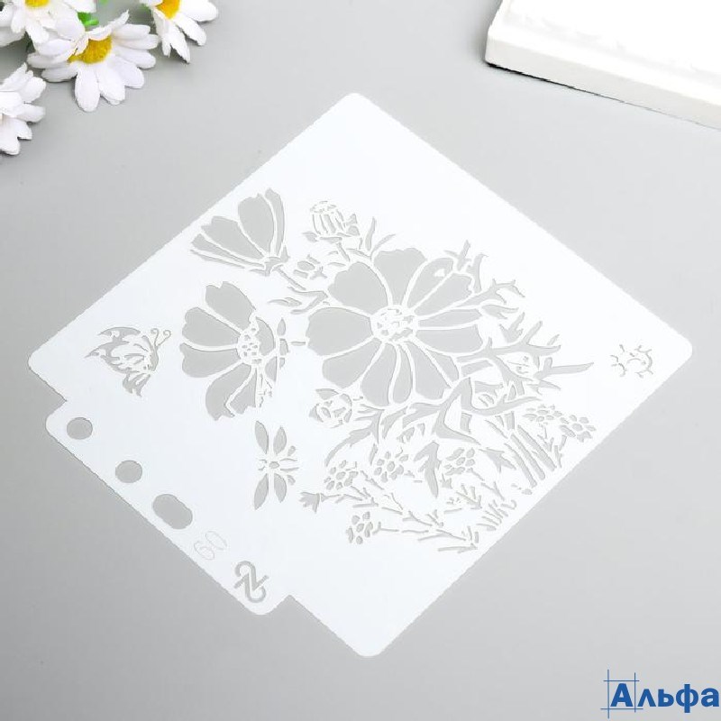Трафарет пластик Куст ромашки и бабочки 13х14 см 5478077