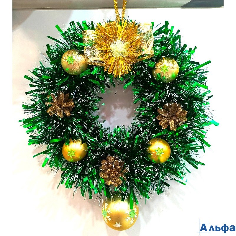 Венок новогодний средний объемный 27 см