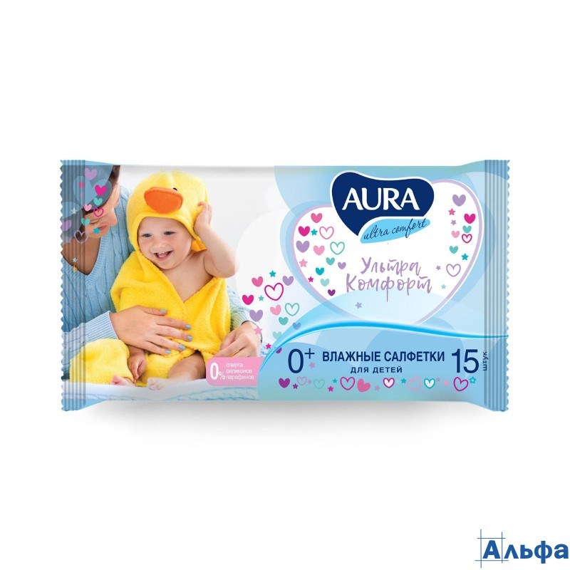 Влажные салфетки Aura Ultra Comfort детские 15 шт