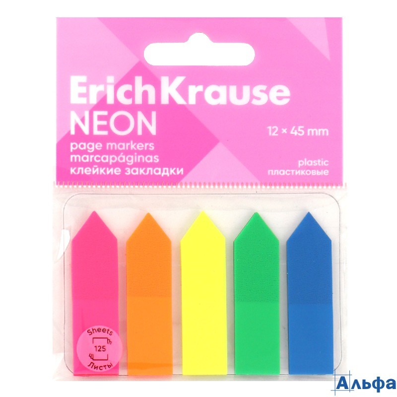 Закладки с липким краем пластик 12х45мм 25л 5цв Neon Arrows E.Krause 61555