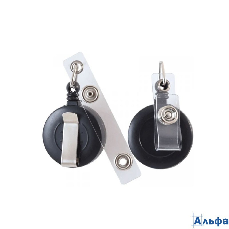 Зажим для бейджа с рулеткой и клипсой черный deVENTE 4010000